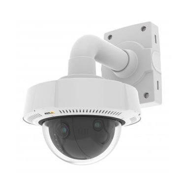 The AXIS Q3708-PVE Network Camera, part number 0801-001, is a vandal-resistant outdoor dome camera designed for surveillance of large areas.